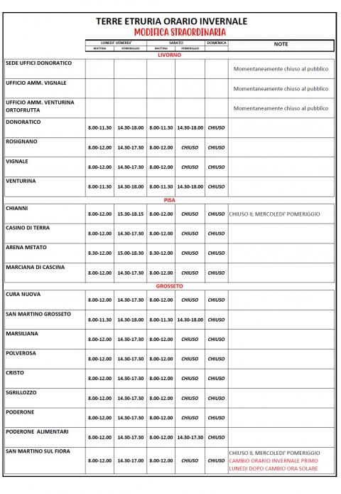 Certi della vostra comprensione, in allegato troverete tutti gli orari aggiornati.