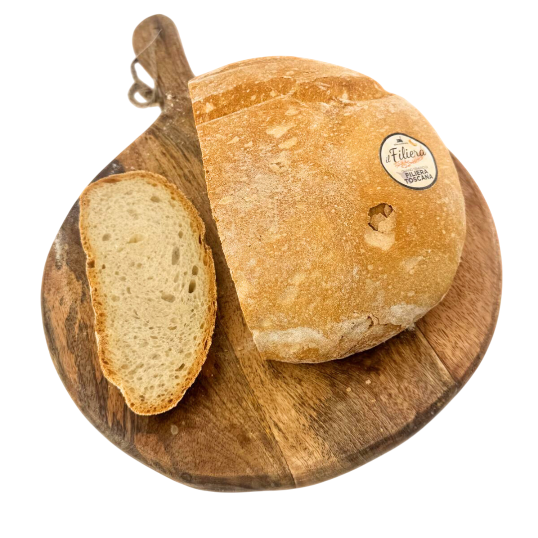 Caratteristiche: Il classico pane toscano “sciapo”;, perfetto con salumi, sughi, olio extra vergine di oliva per bruschette e pomodoro per la “frega”; o "struscia”