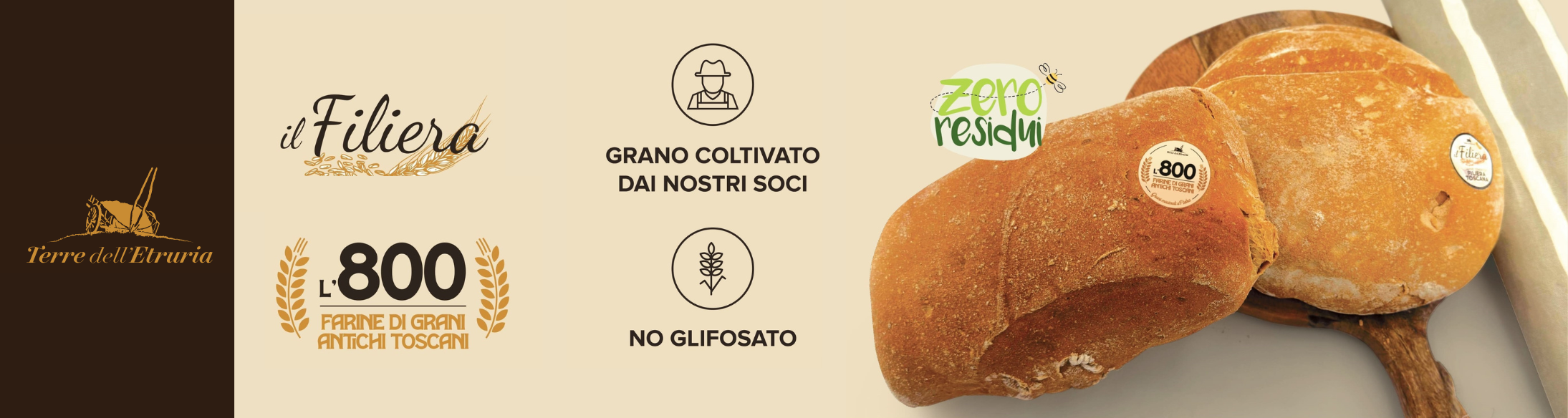Caratteristiche: Pane ricco di storia e sapore, con grani coltivati esclusivamente dai soci della Cooperativa.